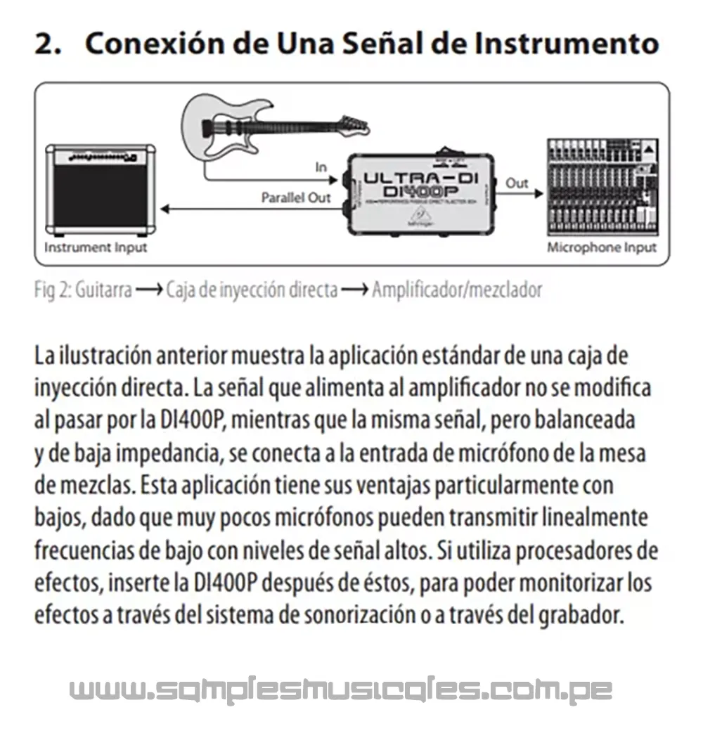 CAJA DIRECTA DE INYECCIÓN DIRECT BOX ULTRA DI clasificaciones de hasta 3000 Watts BEHRINGER DI400P