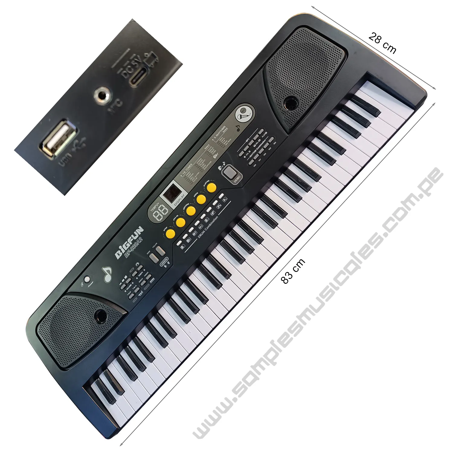 TECLADO 5 OCTAVAS 61 TECLAS 82.5 CM X 28 CM, 16 TONOS 5 RITMOS, 6 DEMOS, 8 PERCUSIONES CON MP3 CARGA DE 5 V BF830A2