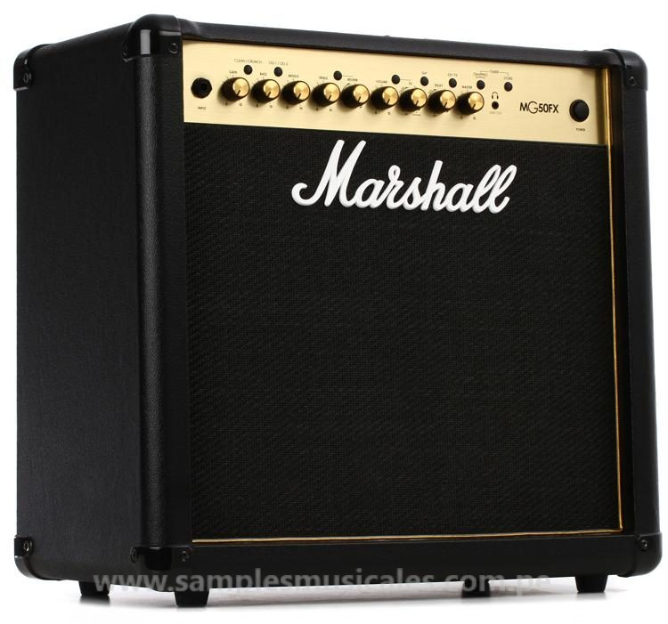 Marshall MG50FX es un amplificador combo para guitarra eléctrica que ofrece el auténtico tono Marshall en un formato compacto, entregando desde tonos limpios brillantes a ricas distorsiones.