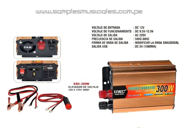 inversor de voltaje 12v a 220v 300w dcc 9.5v – 15.5v ukc SSK300W