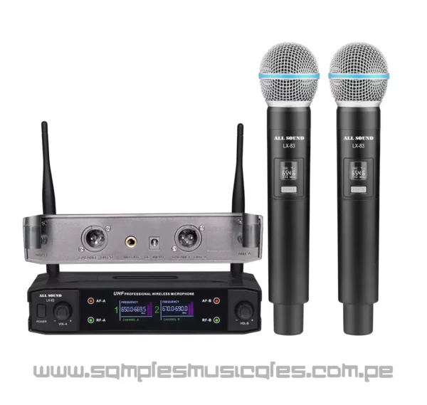 MICROFONO INALAMBRICO UHF DOBLE MANO 50MTR CON MALETIN ALL SOUND PGLX83