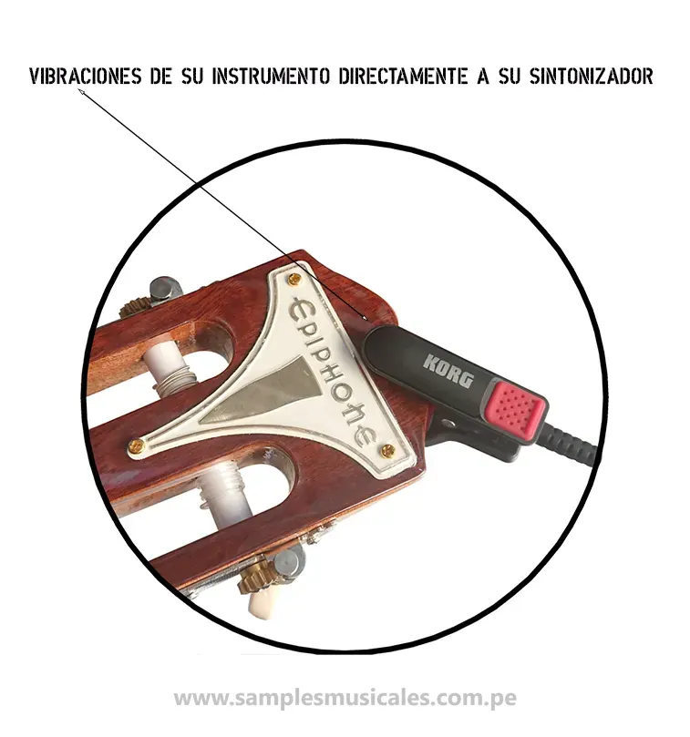 - El micrófono capta las vibraciones y las envía a tu afinador.