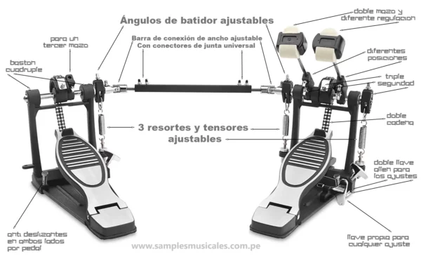 PEDAL DE BOMBO DOBLE ACÚSTICA CON PLATAFORMA MAS FUNDA LLAVE MARIPOSA Y 2 LLAVES ALLEN SAMPLES FV6A