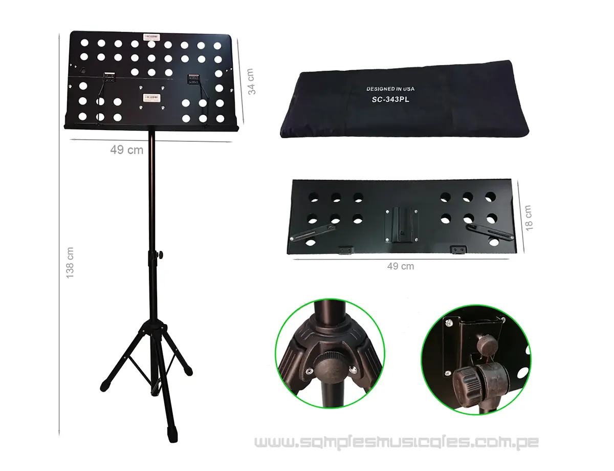 PEDESTAL ATRIL DE PARTITURA CON AGUJEROS PLEGABLE CON FUNDA DIRECTOR SC343PL