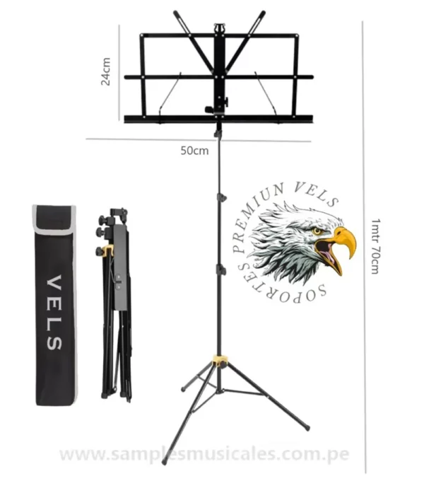 PEDESTAL DE PARTITURA CON SUJETADOR DE GOMA MAS FUNDA ALTURA 1.70MTR REFORZADO VELS 467ELS