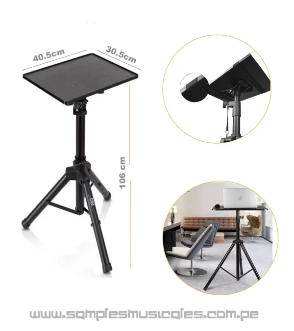 este soporte de trípode para portátil también se puede utilizar para trabajar, para la producción de música o para una actuación. Tiene una placa de 40.5cm x 35.5cm pulgadas que puede contener equipos de música o accesorios de escenario.