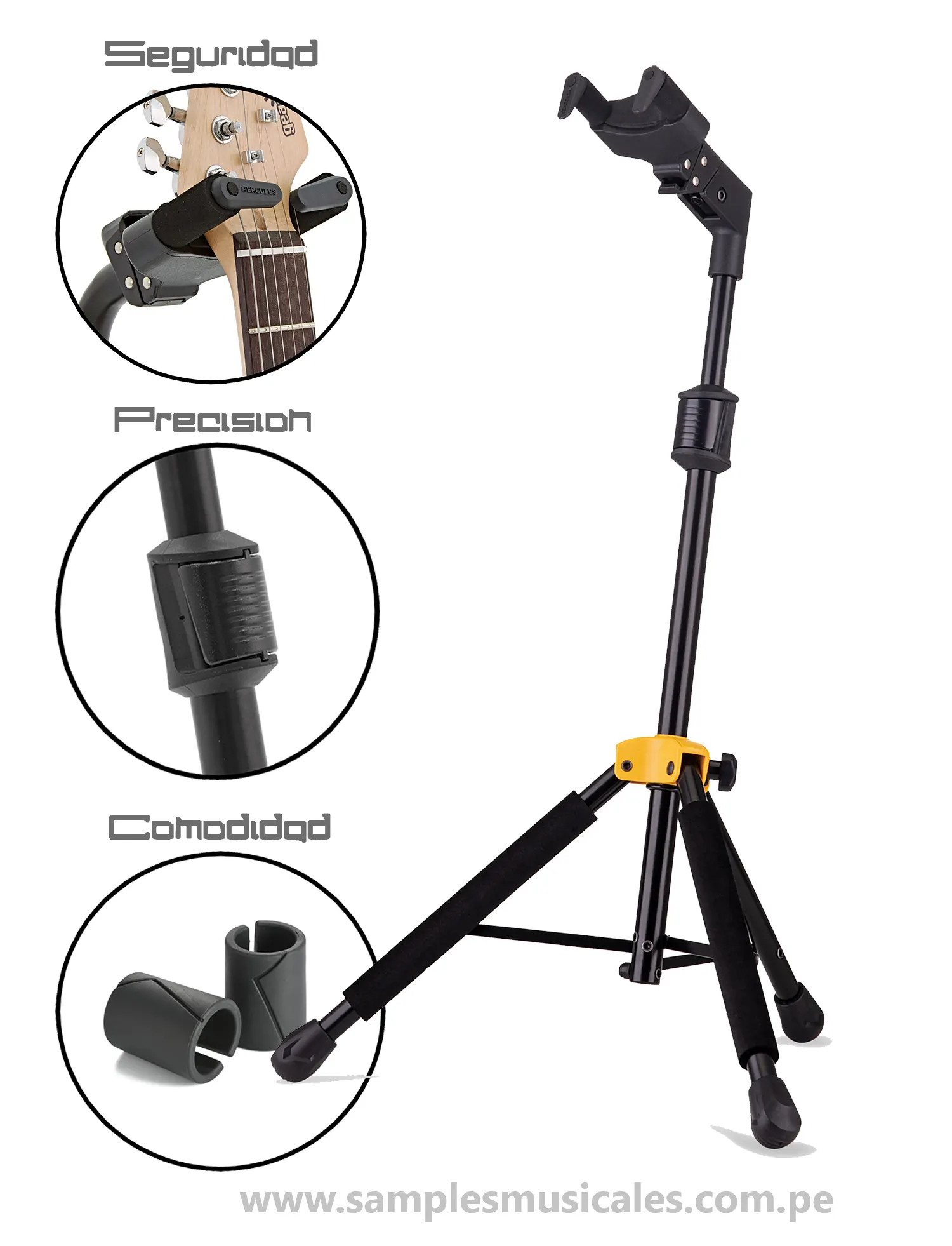 PEDESTAL SOPORTE DE GUITARRA ACÚSTICA BAJO sistema de agarre automático HERCULES SOLO EN POSICIÓN VERTICAL GS414BPLUS