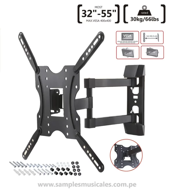 ¡Este RACK TV ACERO CON BRAZO GIRATORIO 32 A 55 BATBLACK BTA27443 puede ser tuyo solo por S/ 115.00! Si tienes alguna duda, pregúntanos