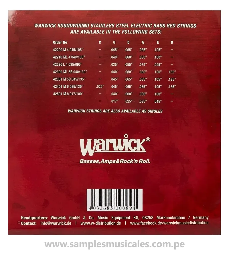 Warwick 42200 Red Label Eléctrico 4 Cuerdas Medio 045-105