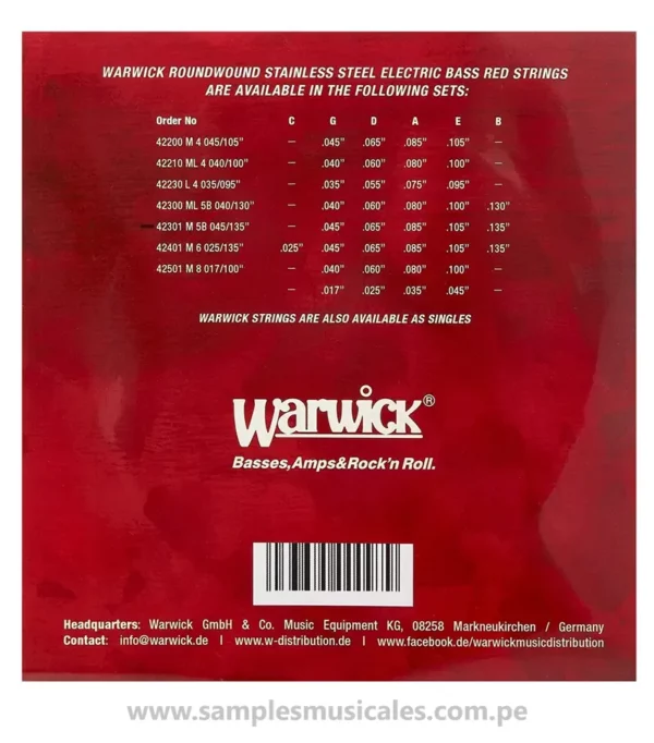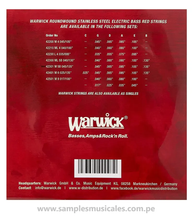 SET DE CUERDAS BAJO ELECTRONICO 5 CUERDAS 045-135 WARWICK 42301M5