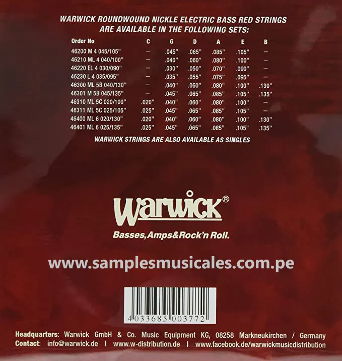 El Set De 6 Cuerdas Para Bajo Eléctrico 46401M6 025-135 Warwick es el complemento perfecto para tu bajo eléctrico. Con una marca reconocida como Warwick, puedes estar seguro de que estás adquiriendo un producto de calidad y durabilidad. Estas cuerdas están fabricadas con materiales de metal de alta calidad, lo que garantiza un sonido potente y definido en cada nota que toques. Con un calibre de 025/135, estas cuerdas ofrecen una tensión media que se adapta a diferentes estilos de música y técnicas de ejecución. El set incluye 6 cuerdas, por lo que tendrás todo lo necesario para reemplazar las cuerdas de tu bajo eléctrico. No pierdas la oportunidad de mejorar tu experiencia musical con el Set De 6 Cuerdas Para Bajo Eléctrico Warwick.