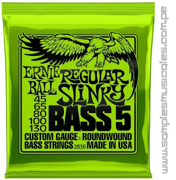 Las principales características del bajo Ernie Ball EB2836 Regular Slinky de 5 cuerdas 45-130 incluyen: