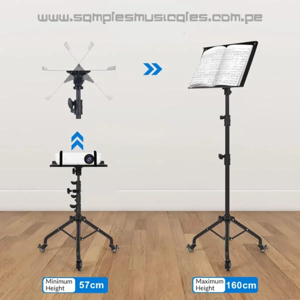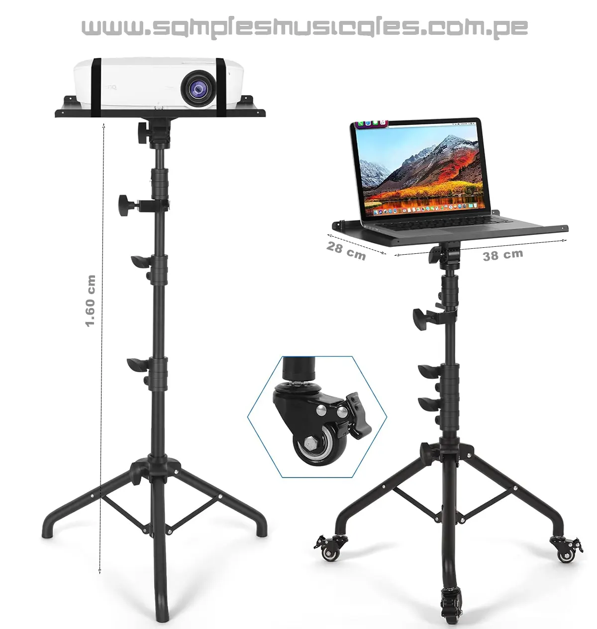 SOPORTE PARA LAPTOP PROYECTOR MIXER CONSOLAS DE DJ CON RUEDAS REGULABLE DESDE 57CM HASTA 160CM BASE DE 28CM X 38 CM A506 SAMPLES