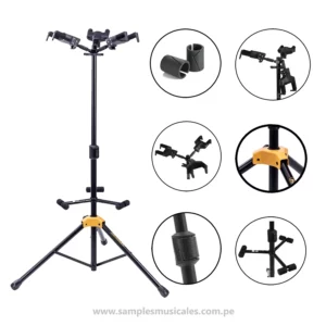 PEDESTAL SOPORTE DE GUITARRA ACÚSTICA BAJO TRIPLE SISTEMA DE AGARRE AUTOMÁTICO HERCULES GS432BPLUS